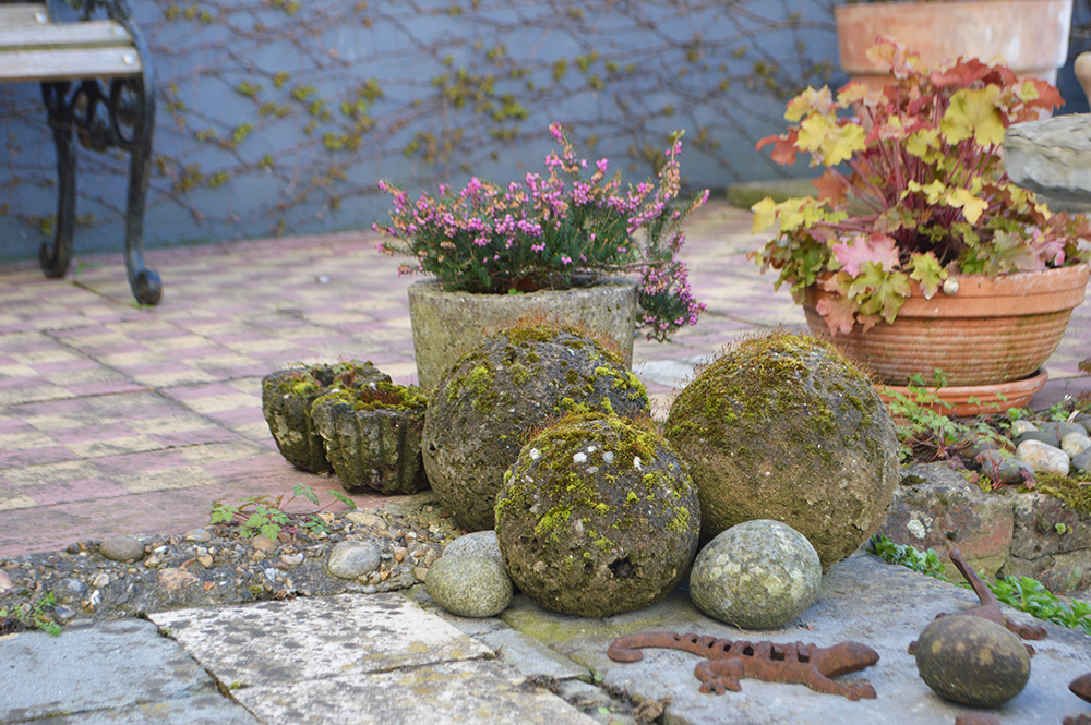 Le mélange se compose de 1/3 de ciment, 1/3 de sable, 1/3 de gravier concassé et d’eau. Pour un aspect plus naturel, ajoutez un peu de tourbe tamisée.