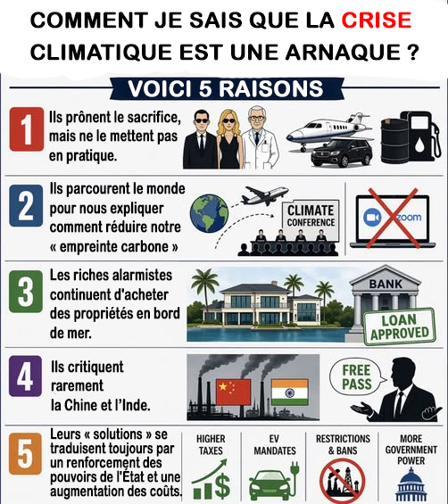 Pourquoi alors nous répète-t-on, sans cesse, que le « changement climatique catastrophique provoqué par l’homme » est un fait irréfutable ? Pourquoi nous dit-on qu’il n’y a aucune preuve qui le contredit ? Pourquoi dit-on, que quiconque, qui remet en question le « chaos climatique » est un « platiste » et un « négationniste de la science » ?