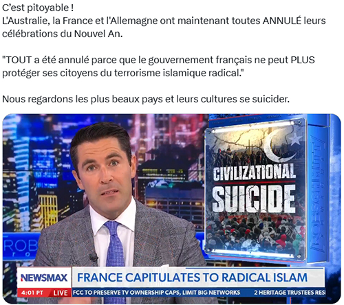 Cette page rassemble des vidéos, articles, images et tweets (X) qui font la preuve que nous sommes envahis par les islamistes.