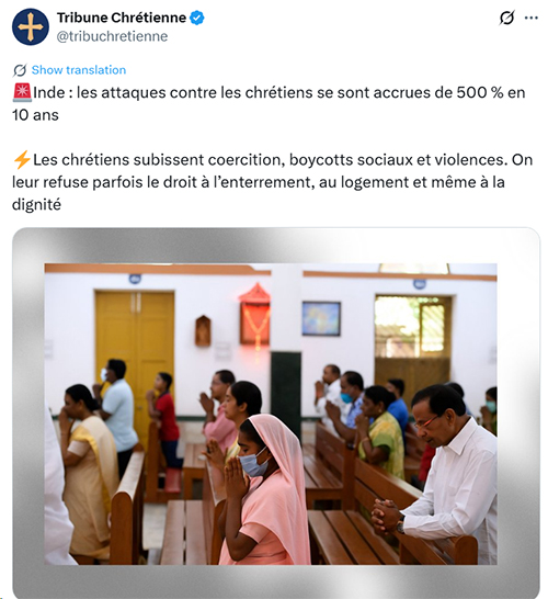 Les violences contre les chrétiens et les églises dans le monde explosent : le christianisme est la religion la plus persécutée au monde. Un chrétien sur sept subit des discriminations, 14 766 églises ont été ciblées, et 4 998 chrétiens ont été tués en raison de leur foi en 2023. 78 pays sont concernés.