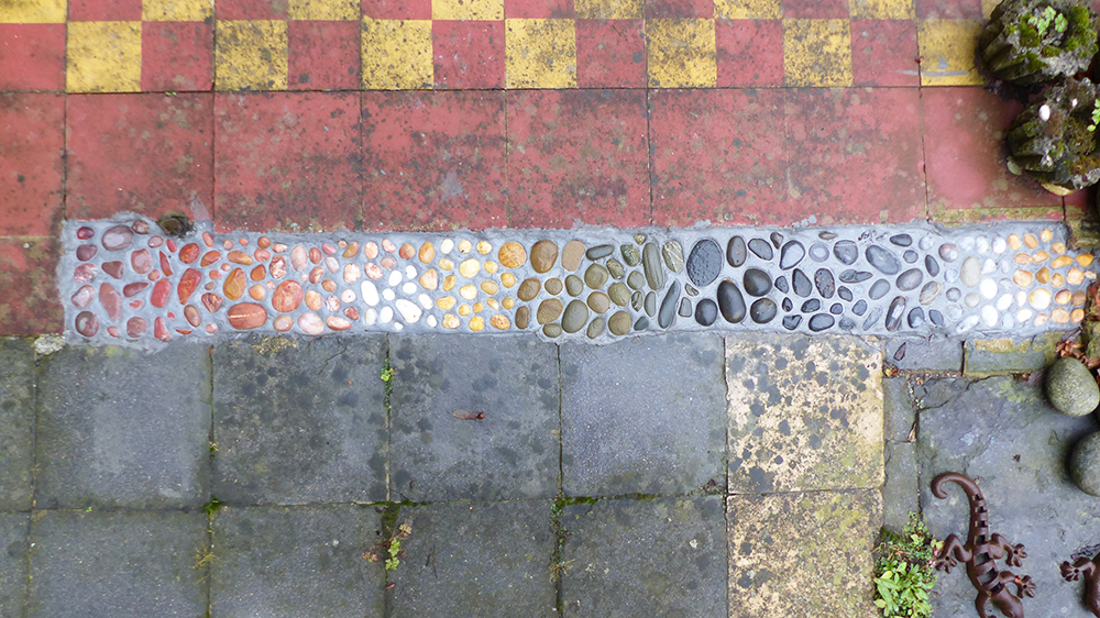 Celle-ci fut ma première mosaïque de galets en dégradé de couleurs.