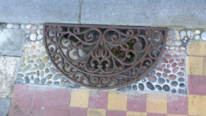 L’annexe était séparée en deux pièces par un mur porteur. Une fois ce mur abattu, il restait un trou béant. Avant de couler le béton, j’ai trié mes galets par couleur pour créer un joli dégradé.