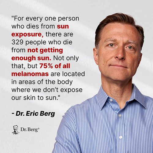 « Pour chaque personne qui meurt à cause d’une exposition au soleil, 329 personnes meurent parce qu’elles ne s’exposent pas suffisamment au soleil. De plus, 75% des mélanomes se développent sur des parties du corps qui ne sont pas exposées au soleil. »